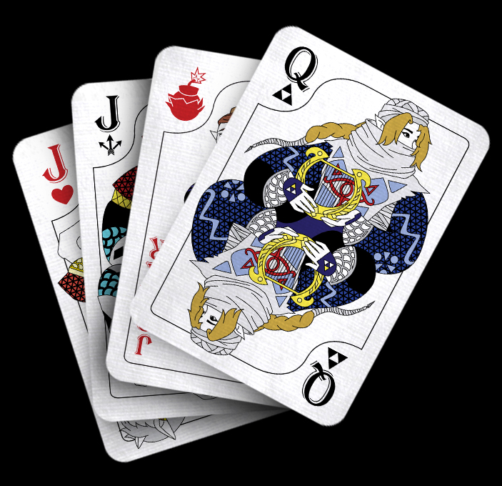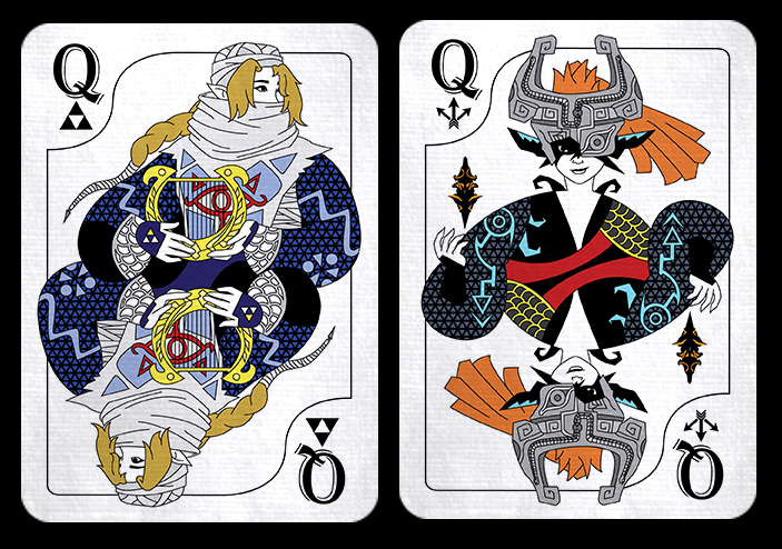 This set contains 6 bonus cards, featuring the following beloved Zelda characters: Shiek, Midna (imp form), Girahim, Happy Mask Salesman, Epona and the Hero's Spirit. The backs of these cards matches the backs of the regular Hylian Court playing court, so these cards can be easily interchanged.